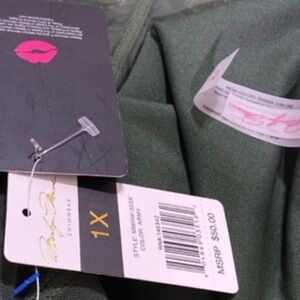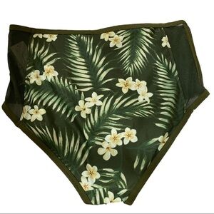 Curvy Size 1X, mesh sides, Army Green Floral Design Front & Back. Approximate measurements are Waist 34”