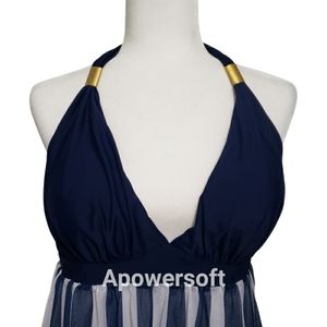 Sexy Dance Two Piece Mesh Stripes Backless Swimdress