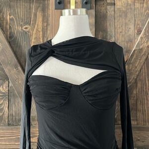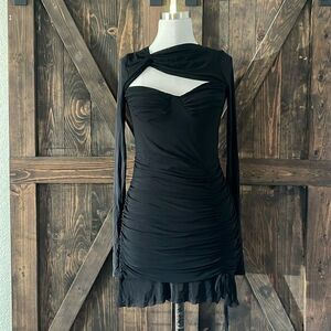 Sexy Drawstring Ruched Bodycon Mesh Asymmetrical Long Sleeve Cocktail Dress