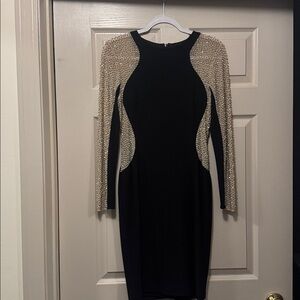 Elegant Black sexy fitted mesh rhinestone sleeves double lined worn once to Birthday Dinner still has lots of life Excelent Condition
