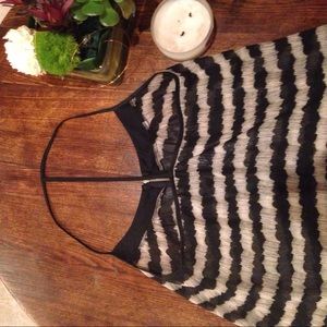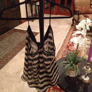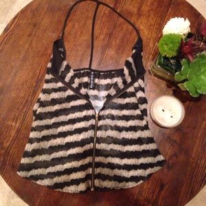 Black and beige striped, sexy spaghetti strap top; Working Zipper down the entire front that allows you to open it to your likening; T- back; Used but in GREAT CONDITION! No stains or tears.