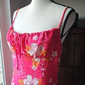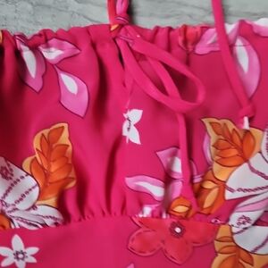 Step out in style with this vibrant floral pink midi dress, perfect for any occasion.
