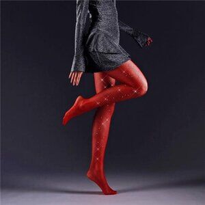 Sexy High Waist Tights Sparkle Rhinestone Red