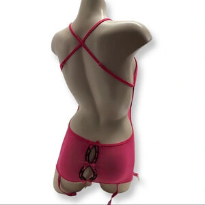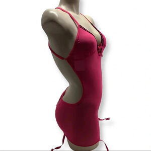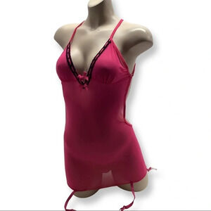 Sexy Hot Pink & Black Mesh Garter Cut Out Style Mini Dress NWOT