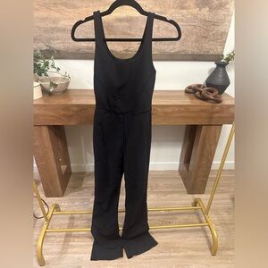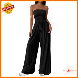 This jumpsuit will be the hottest thing you've seen in a while. With a sexy round neckline, long wide legs, and back zipper, this jumpsuit is perfect for any event. It's made of stretchy material that will contour to your shape and leave you looking flawless.