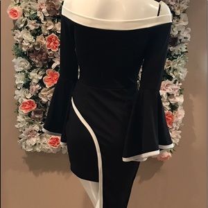 Sexy Knock-Out Asymmetrical Black and White Cocktail Dress