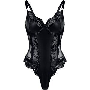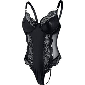 Sexy Leather Lace Underwire Push Up Corset Lingerie Women Teddy Bodysuit Top