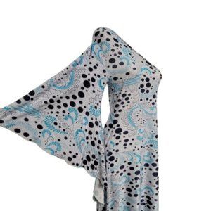 One Shoulder Maxi Dress Blue Polka Dots Paisley Print Long Dress