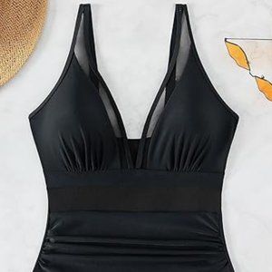 This Tummy Control Bathing Suit for Women Featuring Sheer Mesh Band and Ruched Panel Has Better Coverage on Belly