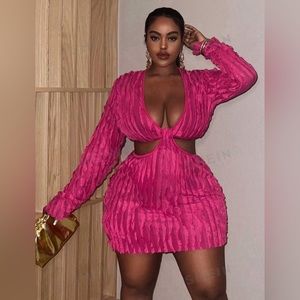 Sexy Mini Dress With Low-Cut Neckline, Waist Cutout w/ Mesh Texture Fabric