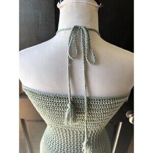 Sexy Open Knit Crochet Festival Boho Swim mini Halter Dress Coverup Teal Green