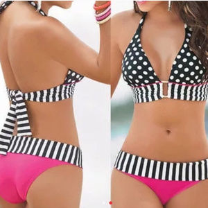Sexy Pink Polka Dots Padded Support Vintage Bikini