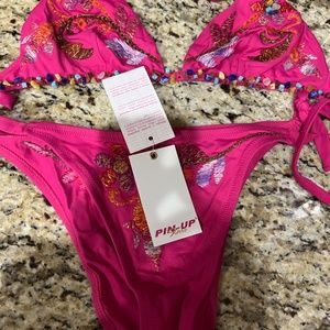 Never used sexy pink bikini by Pin-Up Stars. Still with tags. This swimsuit will make anyone stand out! Great detail to embroidery.