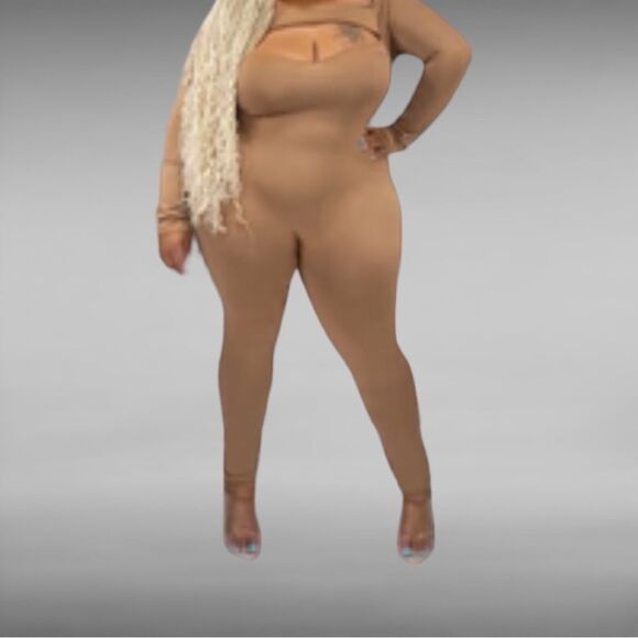 Sexy Plus Size “On Fire” Basic Off Long Sleeve Shoulder Jumpsuit with Key Hole Chest