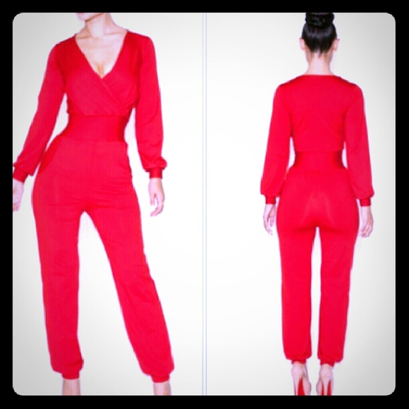Sexy red long sleeve/pant rumper/body suite wear from the office straight to happy hour