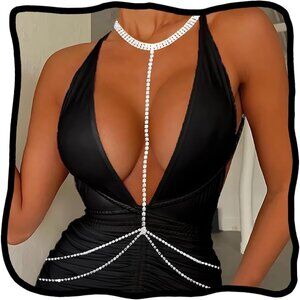 Sexy Rhinestone Body Chain Silver Chest Jewelry Adjustable for Women