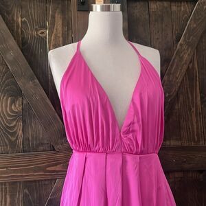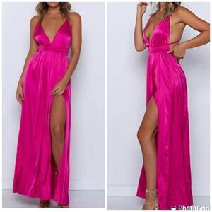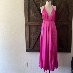Sexy Satin Cocktail Pink ROSE MAXI Strappy Tie Frame no High Slit DRESS