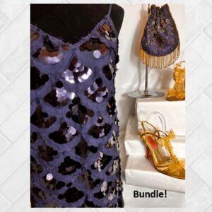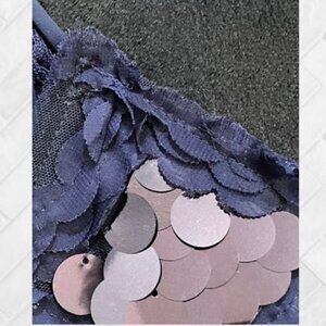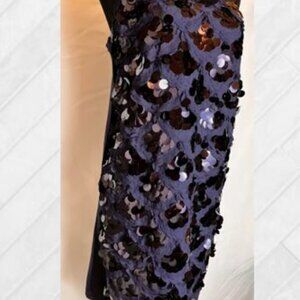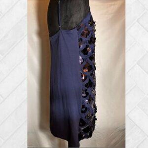 Sexy Sequin Slip Dress in Navy with Scallop Motif EUC Size Large