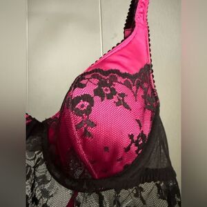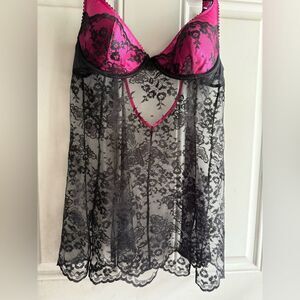 Sexy Sheer Black Lace & Hot Pink Lingerie Babydoll 36C New Without Tags