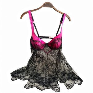 This gorgeous babydoll features a hot pink satin bra top with black lace overlay, paired with a flirty sheer black lace body. Underwire support and adjustable straps for the perfect fit. Tagged as size 36C. Item is brand new without tags – never worn and in pristine condition.