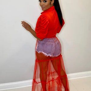 Show off your curves in this stunning Sexy Short Sleeve Turn Down Collar Tie Mesh Dress. This dress features a turn down collar and short sleeves with a mesh overlay, while the tie detailing adds a touch of sophistication. The fitted silhouette and midi length make this dress perfect for any occasion.