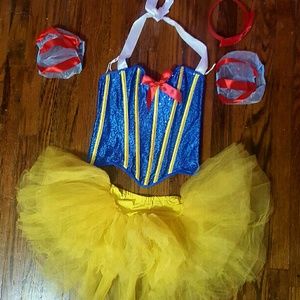 Sexy snow white costume. Includes tutu , corset, shoulder sleeves and red headband and I can include matchable white socks