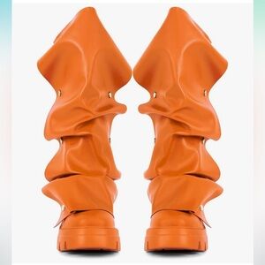 Sexy Tag Womens Orange Platform Slouchy Fold Over Boots Block Heel 6