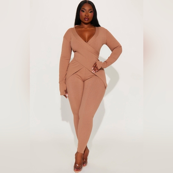 Step out in style with this flattering tan jumpsuit. Perfect for date night or girl's night. Form fitting. Size 1X.
