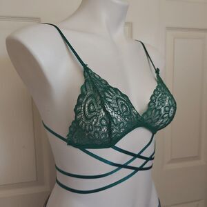 Sexy Three Points Hollow Binding Strappy Lace Bra sz S