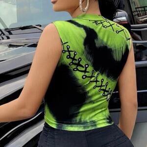 Sexy Tie Dye Lace Up Print Crop Tank Top