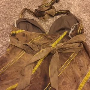 Sexy Tie/Backless Top. There is a little tear please see picture. Other than that is in good condition. It was given as a gift. Never wear it.