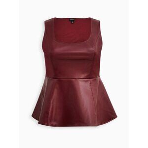 Sexy Torrid Red Peplum Faux Leather Sleeveless Top Size 2X 18 20 Plus Tank Shirt