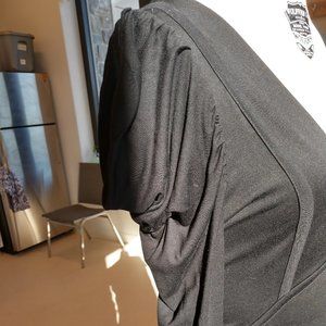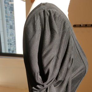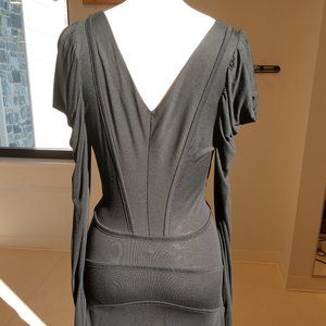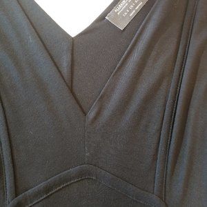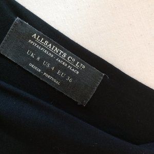 Stunning NWOT All saints Black knit dress in a US size 4, armpit to armpit measures 15 1/5" flat, shown on a size 6 dress form who measures (Bust 32 1/2", waist 24 1/4", hip 35") this dress is more of a true 4. gorgeous seam details make this dress beautiful all around the garment, dress is a light weight 100% viscose knit, made in Portugal. long sleeves have a draped leg of mutton style and a symmetrical handkerchief hemline that add to the romantic styling of this beauty