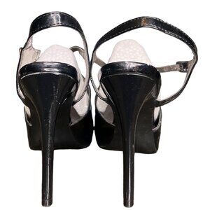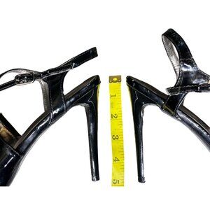 black heels, open-toe shoes, ankle strap heels, stiletto heels, women's dress shoes, formal shoes, high heels, patent leather shoes, shoes, black footwear, evening heels, stylish heels, women's black shoes