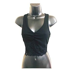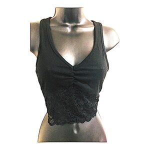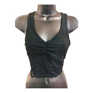 Sexy black racerback lace trim v-neck crop top size small brand new