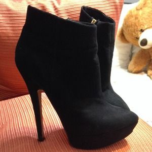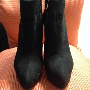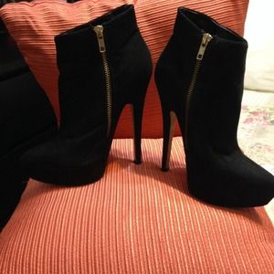 Black booties for fall. Super sexy! Makes legs look really long. Size 6 minor scratches but you can not tell when worn.