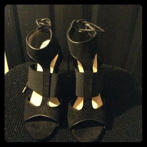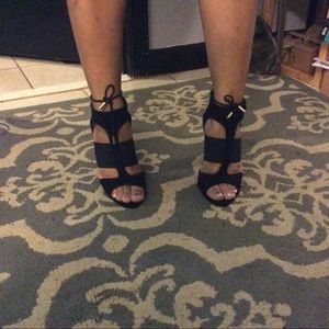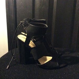 Size 8 black strappy sandal with black string that tie in the back. Never worn
