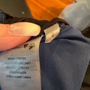 Sexy lace up front one piece swimsuit with gold grommets medium blue size 8 GUC. This is a super-flattering suit, low cut neckline but with a full-coverage bottom. I’ve worn it several times now it’s time for a change. Still a very eye-catching, fun suit.