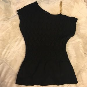 Sexy off the shoulder top. Gold chain strap on left should shoulder. Slightly see through. Color: black. Size: S.
