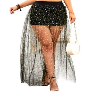 Sexy plus size mesh maxi skirt sz 2x completely see-through can also be worn as a beach cover up