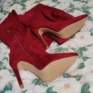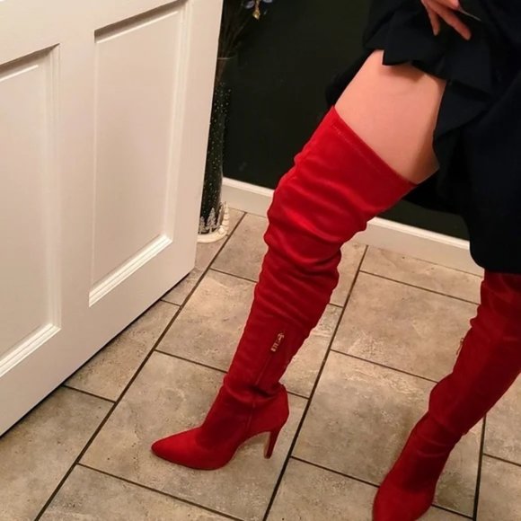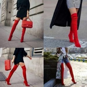 Sexy stretchy suede side zipper thigh high over the knee pointed toe boots
