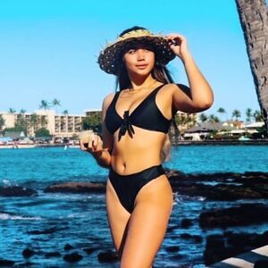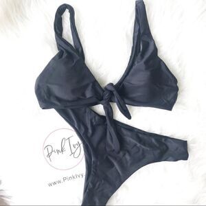 Sexy Black Tie Knot Front Two Piece Bikini…