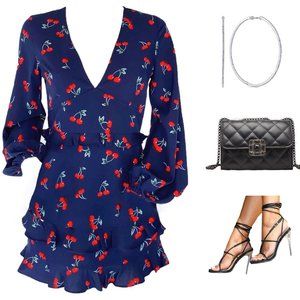 Sexy/Elegant Cherry Print Long Sleeve Dress