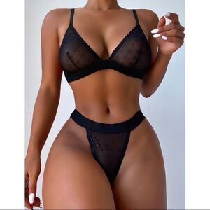This two piece set includes a mesh bra and thong