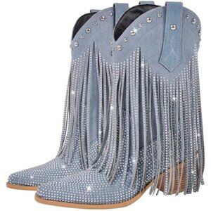 This fringe mid calf cowboy boots has heel height about 5CM.