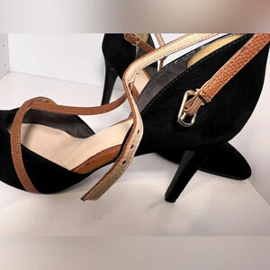 Seychelle Heritage 2 tone stretch ankle strap suede t-strap 3.5in stiletto sz8