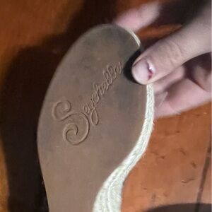 Very good condition size 8 blue suede wedge espadrille sandals. These look barely worn - please see soles. Comfy high heel. Seychelles are often sold at Anthropologie. They have both a nautical and boho vibe to them.