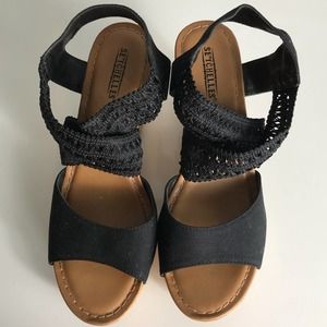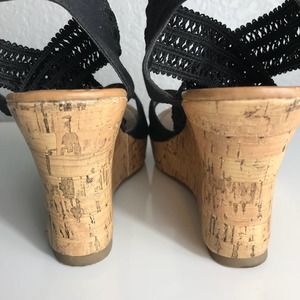 Seychelles Black Lace Cork Wedge Sandals 8