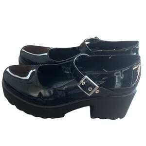 Seychelles Black Patent Leather Mary Janes Shoes 8 Chunky Coquette Whimsigoth