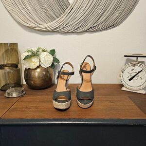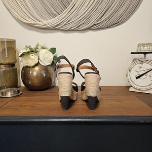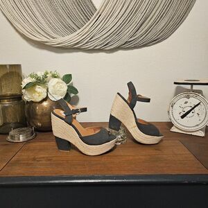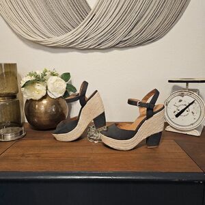 Seychelles Black Woven Espadrille Wedge Heels Sz 8.5